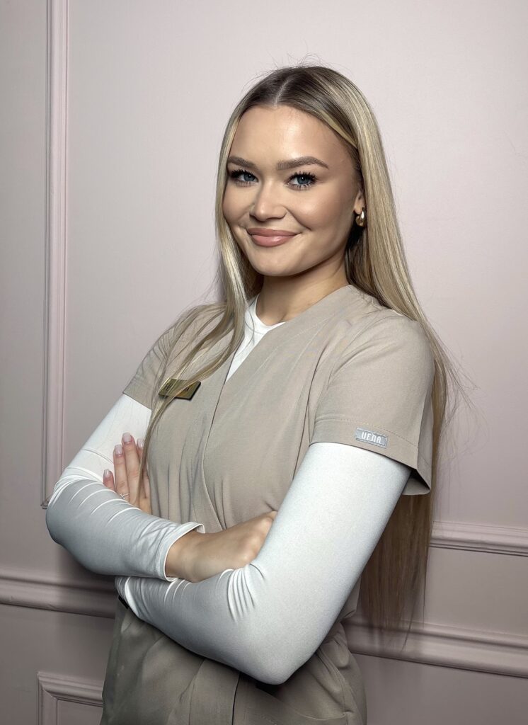 Od zawsze marzyłam o pracy w kosmetologii, dlatego ukończyłam studia licencjackie na Uniwersytecie Medycznym w Białymstoku, a dziś kontynuuję rozwój na studiach magisterskich z kosmetologii bioestetycznej. Moja droga zawodowa opiera się na chęci łączenia wiedzy naukowej z praktyką, aby każda osoba, która trafia do gabinetu, mogła poczuć się zaopiekowana i bezpieczna.